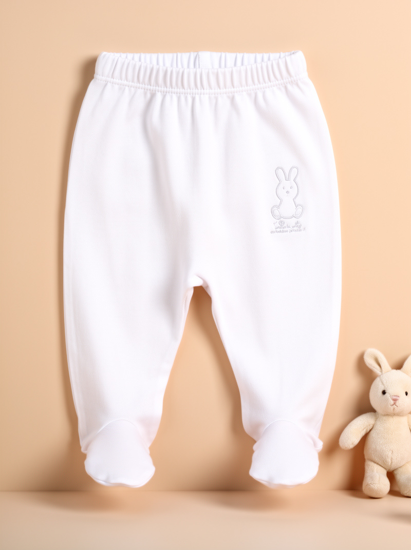 Essential White Footed Leggings. These leggings are designed to be a soft, foundational piece for any nursery wardrobe, ensuring your little one stays cozy from waist to toe.