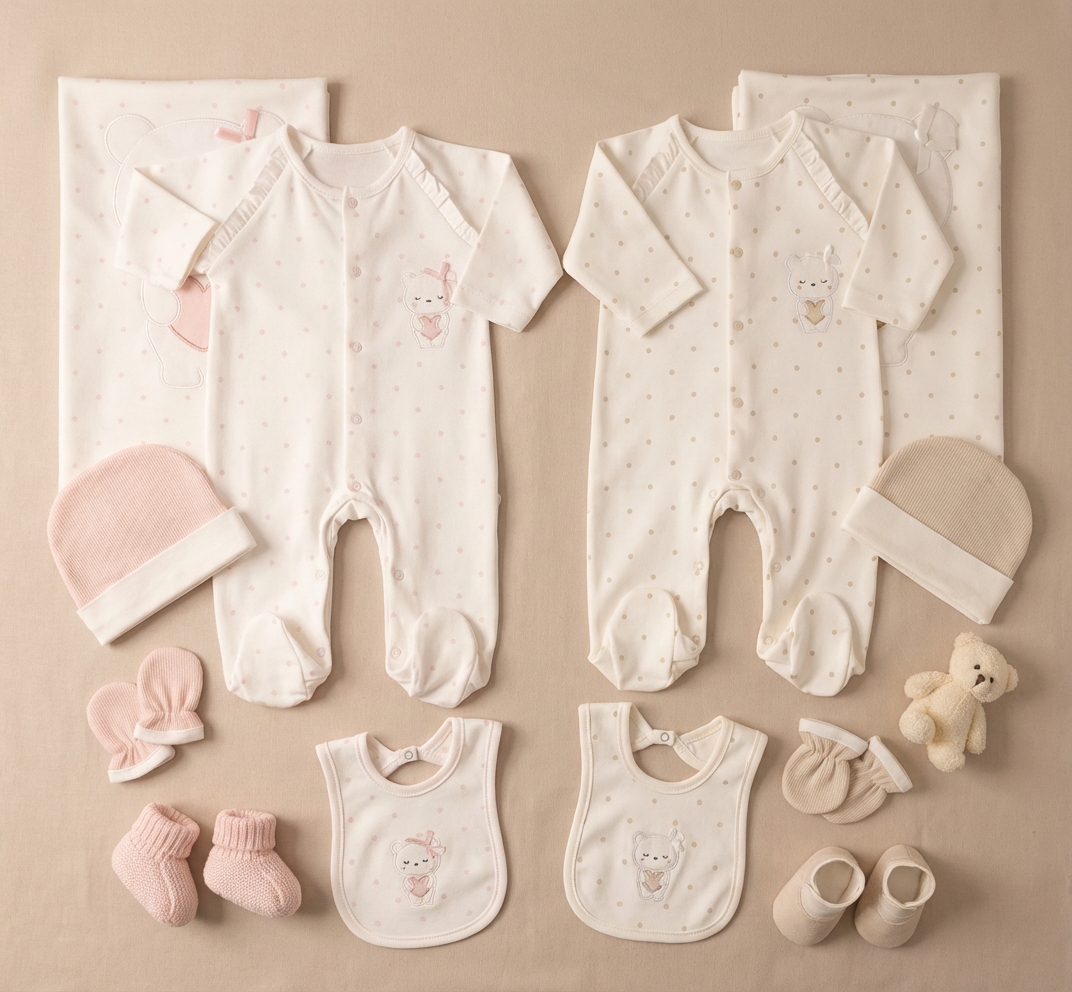 This thoughtfully curated set ensures your baby stays comfortable and stylish while providing practical items every new parent needs.