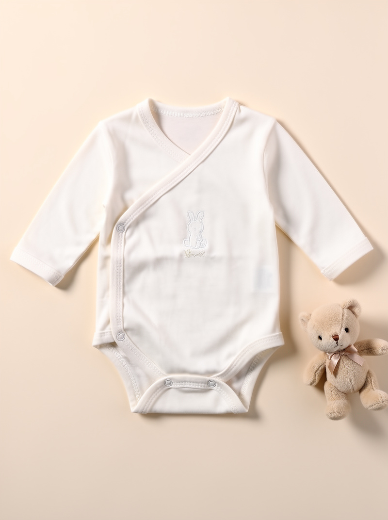 Long-Sleeve with Easy-Wrap Kimono Style features a side-snap (wrap) closure.