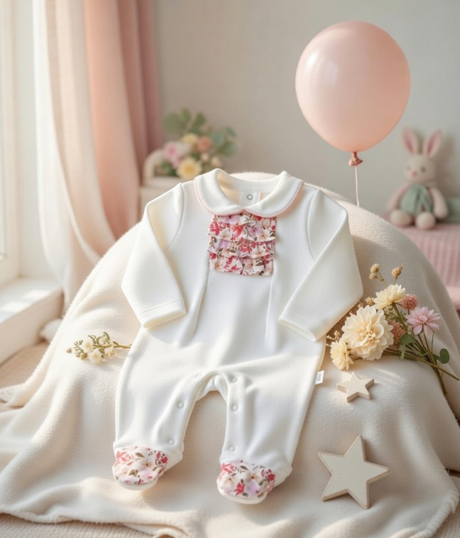 The floral-patterned footed-overall keep tiny feet warm and stylish.